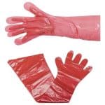כפפות ארוכות וטרינריות חד פעמי 29*83 -30 מיקרון גומי בקצה הזרוע 100יח בשקית 1000 בקרטון