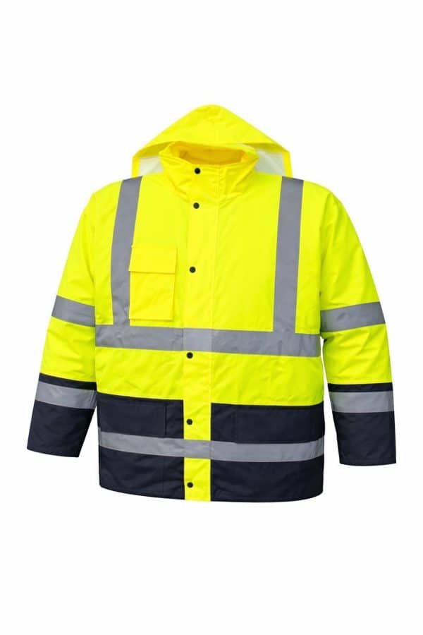 מעיל עבודה זוהר עם מחזירי אור (מעיל גשם בטיחותי)